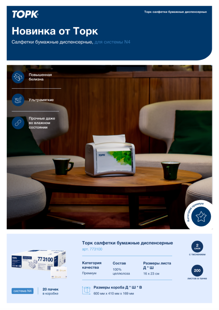 <b> </b> <h3><b>Новинки от ТОРК </b> <br> Салфетки Бумажные диспенсерные для <b>C</b><b>истемы N4</b></h3> <h3></h3>